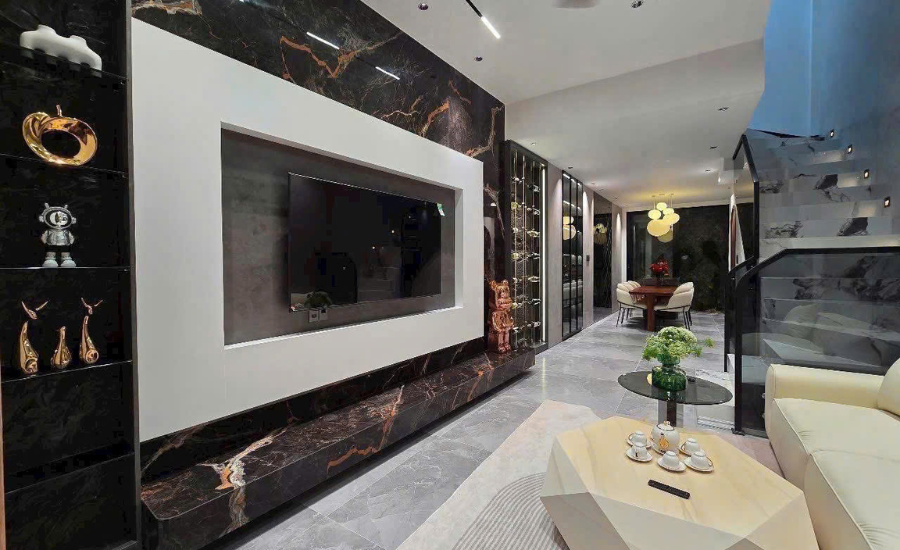 ốp tường, mặt tiền, cầu thang, bếp, bàn đảo, lavabo,…