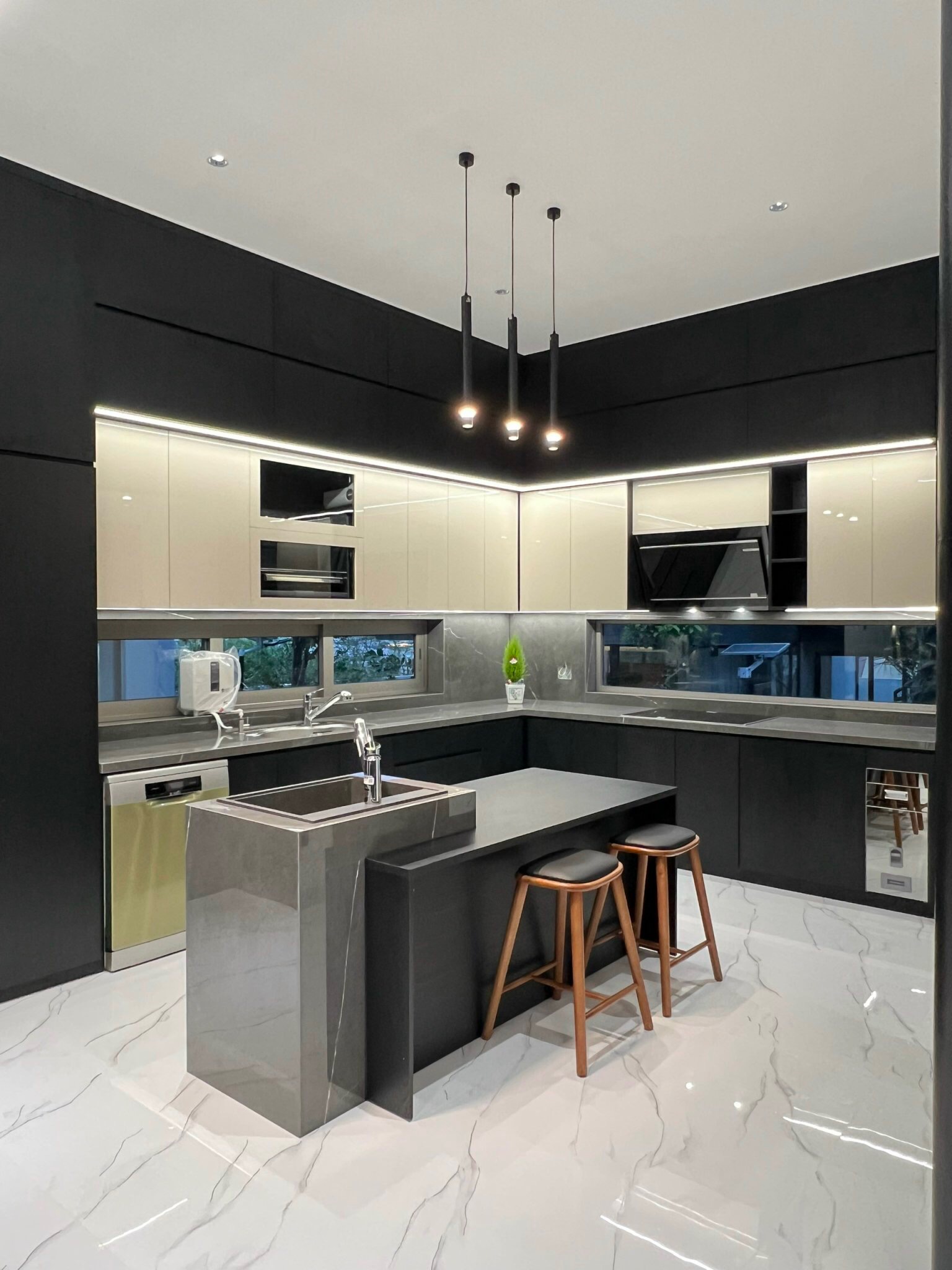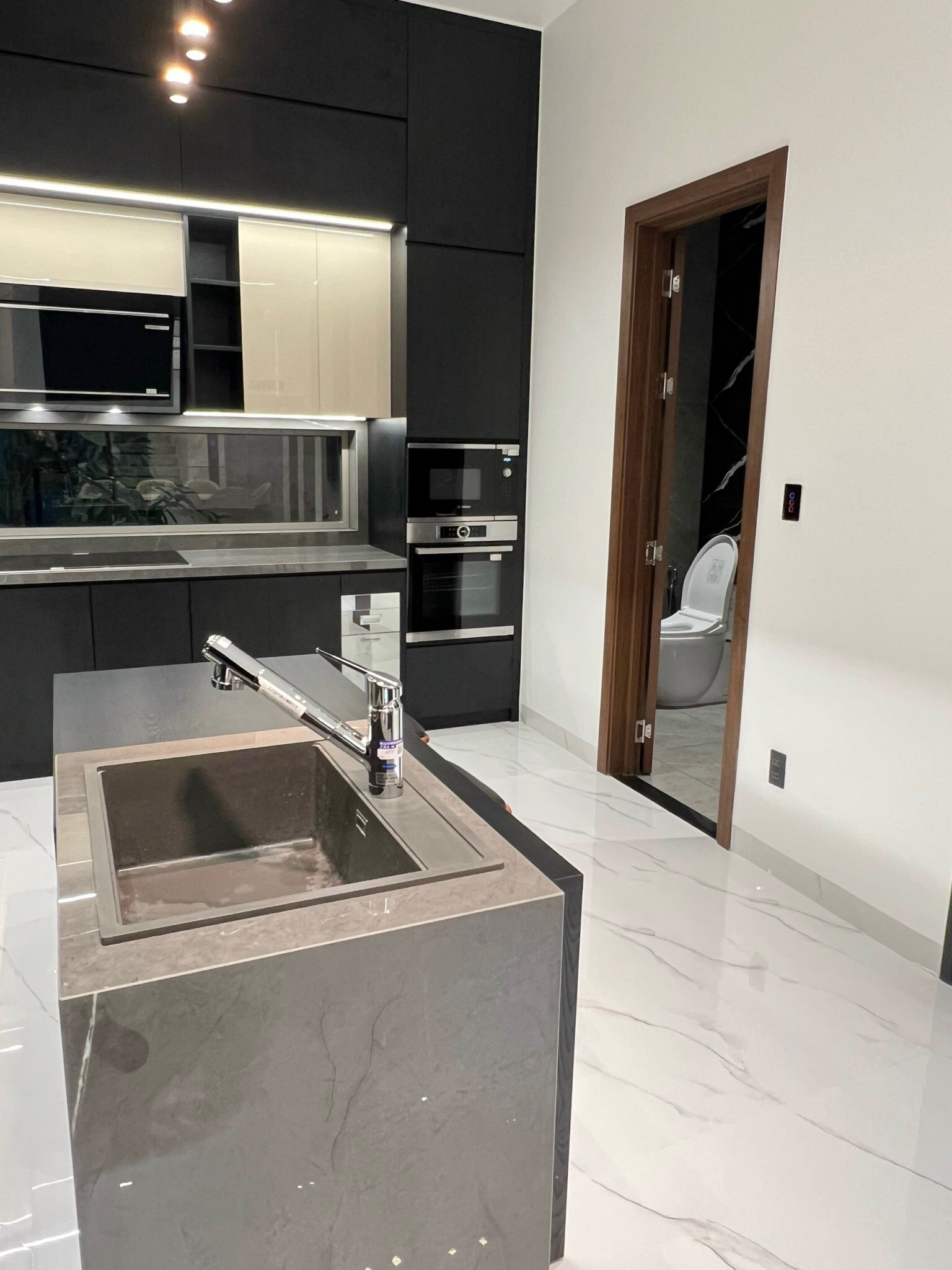ốp tường, mặt tiền, cầu thang, bếp, bàn đảo, lavabo,…